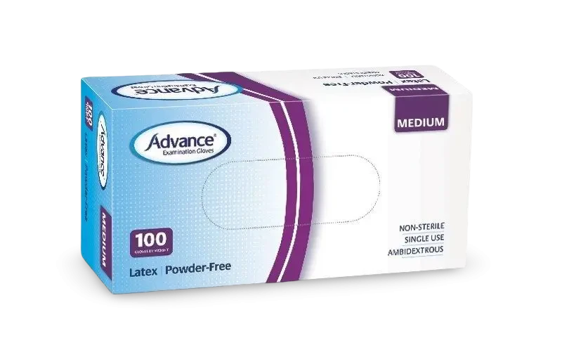 Advance® Latex Powder Free Gloves | Medium - Product Code: GL022 Packet 100 pieces Carton Qty: 10 packs/1000 pieces Size: Small (100 pieces) Medium (100 pieces) Large (100 pieces) Extra Large (100 pieces) Product Enquiry Product Enquiry Account Application Account Application These powder free, natural latex rubber gloves provide superior barrier protection and extra sensitivity whilst minimizing skin irritation. Advance® Latex Powder Free Examination Gloves are polymer coated which enables easy donning and extra comfort. Ideal for anyone who changes gloves frequently, washes hands often or wears gloves for extended periods of time. Packet quantity: 100 pieces Carton quantity: 10 packs/1000 pieces Key Features Non-Sterile Polymer Coated Powder Free Single Use Ambidextrous Bead Cuff High tensile strength International Medical Grade AQL 1.5